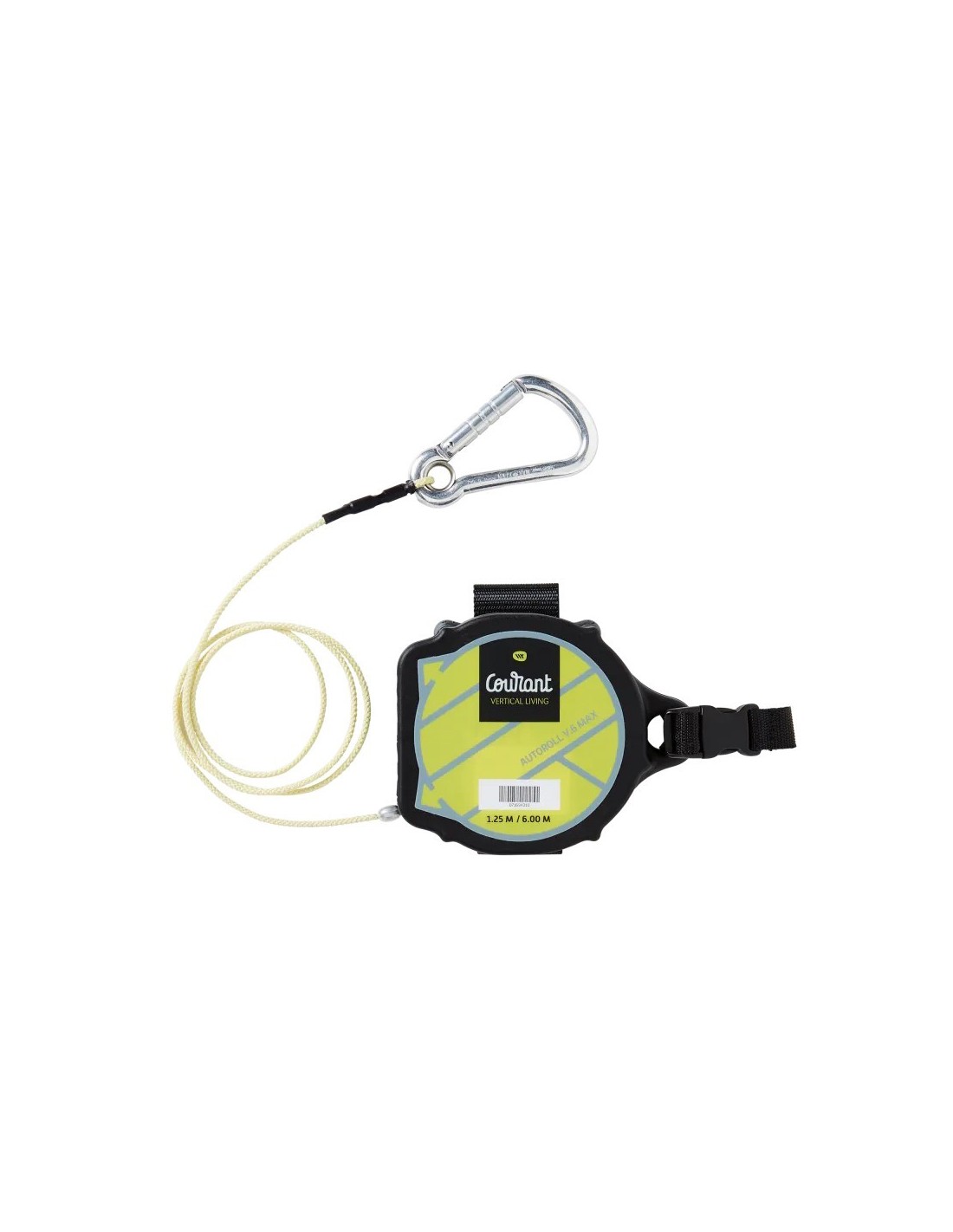 Blokada na długości 1.25m, bez mechanicznego systemu blokowania. We wzmocnionej obudowie znajduje się 6 m linki.