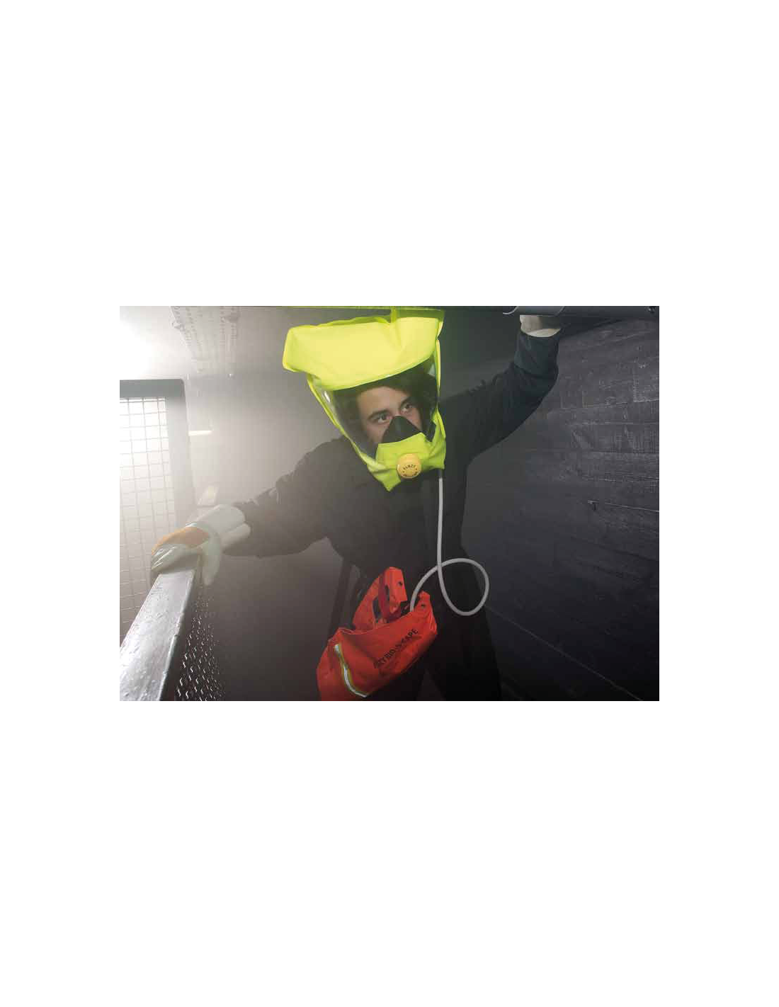 Aparat ucieczkowy Fenzy Bio-s-cape zapewnia optymalne warunki oddychania. W kapturze wytworzone zostaje lekkie nadciśnienie eliminujące ryzyko wdychania skażonego powietrza z zewnątrz. Nadmuchiwana poduszka w tylnej części kaptura umożliwia regulację kaptura. Dzięki temu kaptur pewnie zabezpiecza głowę, zapewnia komfortowe oddychanie i wysoki stopień bezpieczeństwa pozostawiając wolne ręce. Sygnał gwizdka informuje o zbliżającym się wyczerpaniu zapasu powietrza.- przechowywany w torbie, która ułatwia przenoszenie i ewakuację,