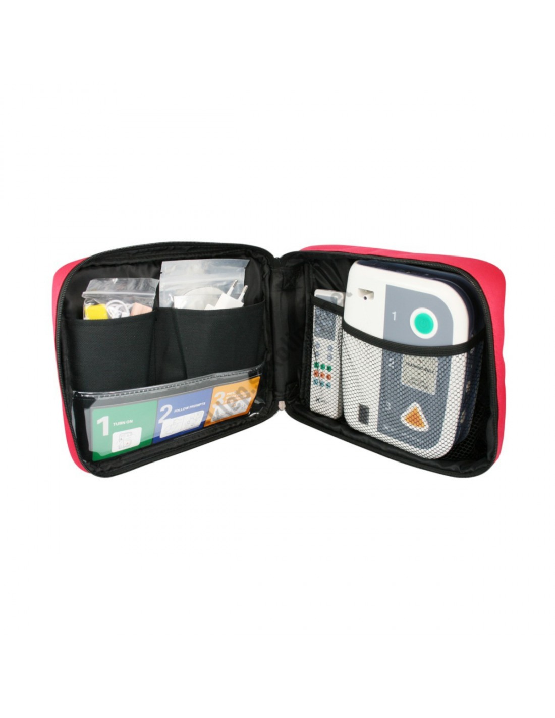 Defibrylator może być sterowany za pomocą dołączonego pilota. Możliwe jest zasilanie bateryjne lub przy użyciu zasilacza sieciowego. Wszystkie elementy zestawu mieszczą się w poręcznym etui.