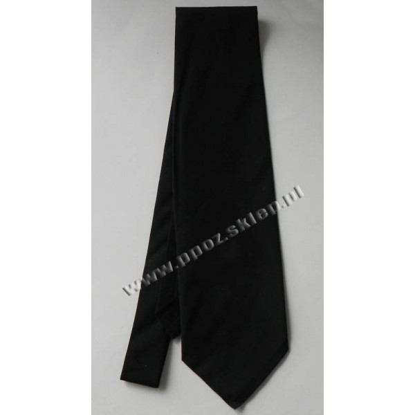 Gładki krawat w kolorze czarnym. Stosowany do ubioru wyjściowego i letniego.
