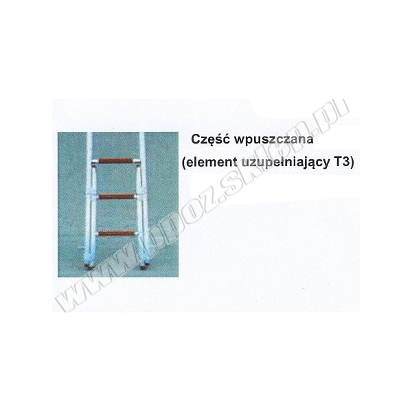 Część wpuszczana (element uzupełniający T3) Służy jako uzupełnienie 7-mio szczeblowej części górnej drabiny nasadkowej. Wymiary: długość ok. 780 mm, szerokość ok. 400 mm; 2 szczeble. Waga: ok. 3 kg