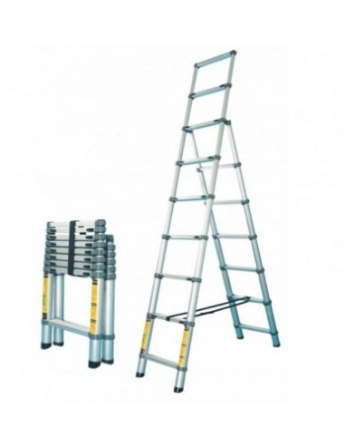 Doskonały model drabiny pierwotnie zaprojektowany dla profesjonalistów, charakteryzuje się mocną konstrukcją oraz zastosowaniem lekkich, aluminiowych materiałów, które pomogły w obniżeniu całkowitej wagi drabiny. Drabina jest zaprojektowana w taki sposób, by umożliwić jej złożenie do możliwie jak najmniejszej wielkości. Właściwości drabiny sprawiają, że nadaje się ona nie tylko do użytku profesjonalnego, ale znajdzie również swoje miejsce w warsztacie, w domu czy w ogrodzie, gdzie posiadacze docenią każdą z jej zalet.Zwłaszcza możliwość złożenia drabiny do minimalnej wielkości będzie doceniana przez wszystkich użytkowników, którzy w warsztacie czy w domu walczą o każdy centymetr miejsca. Jest to również cecha, którą właściwie ocenią wszyscy, którzy potrzebują przemieszczać się razem z drabiną na odległe miejsca, a przy tej okazji muszą za każdym razem rozwiązywać problem jej transportu. Wszystkie elementy konstrukcyjne: stopnie, blokady zabezpieczające, itd. są zaprojektowane i wykonane zgodnie z zasadami ergonomii, są zarazem łatwe, intuicyjne w użytkowaniu.