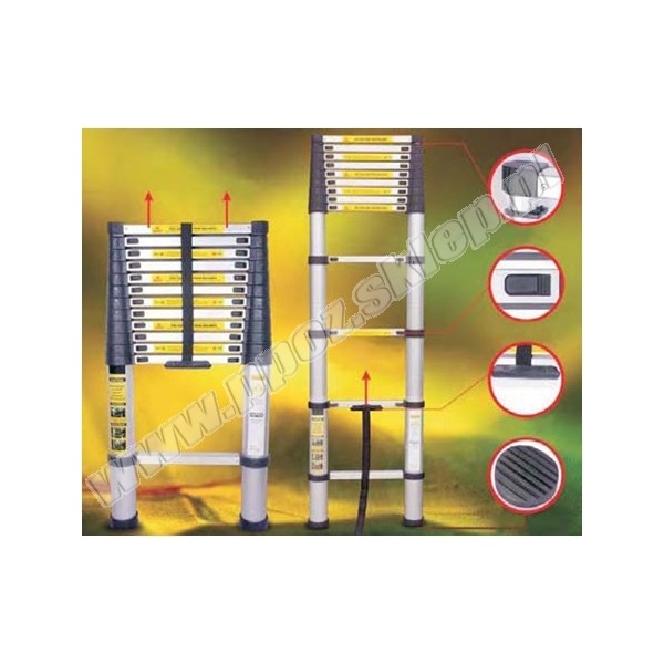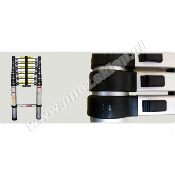 Lekka, poręczna drabina teleskopowa. Najlepsze połączenie jakości i ceny. Drabina o wszechstronnym zastosowaniu (działaność ratwonicza, budowlana, domowa). Złożona drabina zajmuje niewiele miejsca.