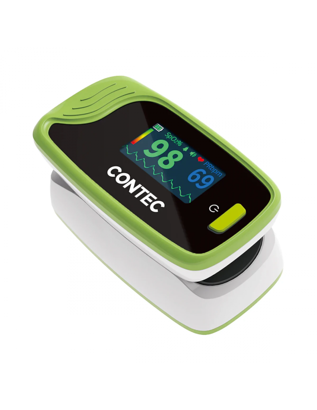 Pulsoksymetr napalcowy CONTEC CMS50-Pro to urządzenie medyczne, które służy do szybkiego pomiaru poziomu natlenienia krwi oraz tętna. Stopień nasycenia krwi tlenem (saturacja) oznaczony jest symbolem SpO2 i wyrażony w wartościach procentowych. Prawidłowy przedział wyniku saturacji u zdrowych osób wynosi 95-99%. Tętno (częstotliwość pracy serca) oznaczone jest symbolem PRbpm i prezentuje ilość uderzeń serca w czasie minuty. Ponadto, pulsoksymetr napalcowy wskazuje także falę przebiegu.