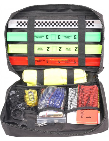 Zestaw do segregacji Triage podstawowy zawiera 36 kolorowych opasek odblaskowych z elementem sprężynującym oraz podstawowe akcesoria ratownicze. Wszystko umieszczone w wytrzymałej torbie, zapewniającej szybki dostęp i wygodne użycie.