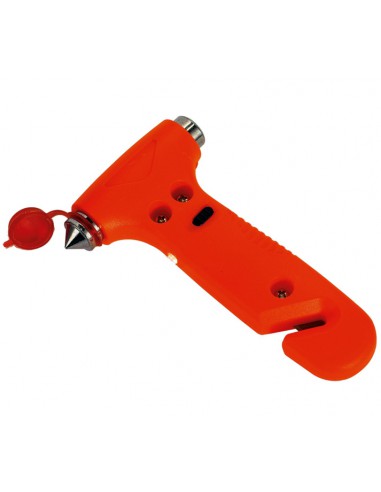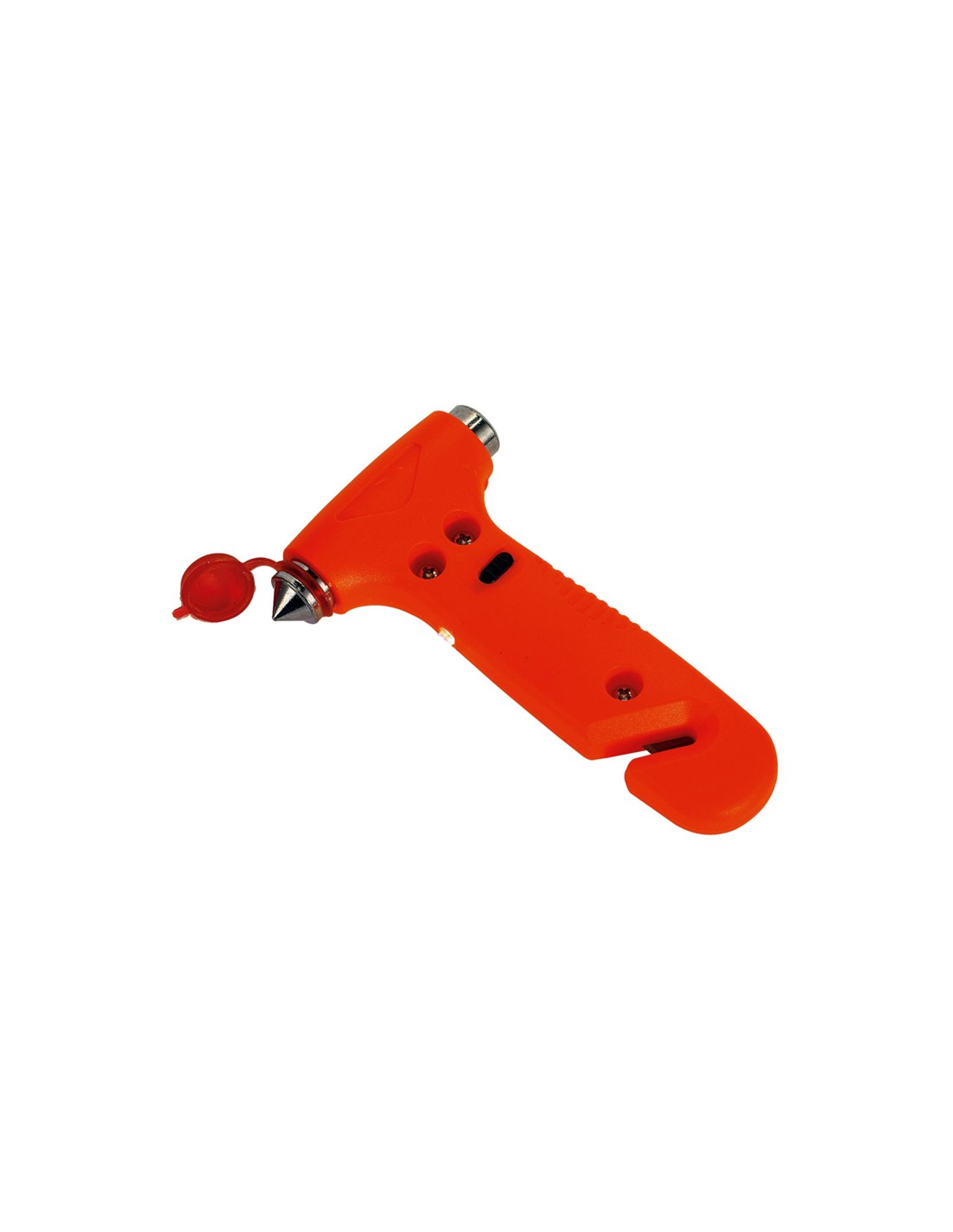 Młotek bezpieczeństwa z wybijakiem szyb i nożem do cięcia pasów. Produkt służy przede wszystkim do wybijania szyb w samochodach w czasie kolizji samochodowych. Lekkie uderzenie w dowolne miejsce szyby rozbija ja na tysiące drobnych kawałków. Ponadto, młotek posiada dodatkowo nóż do błyskawicznego cięcia zaklinowanych pasów bezpieczeństwa.