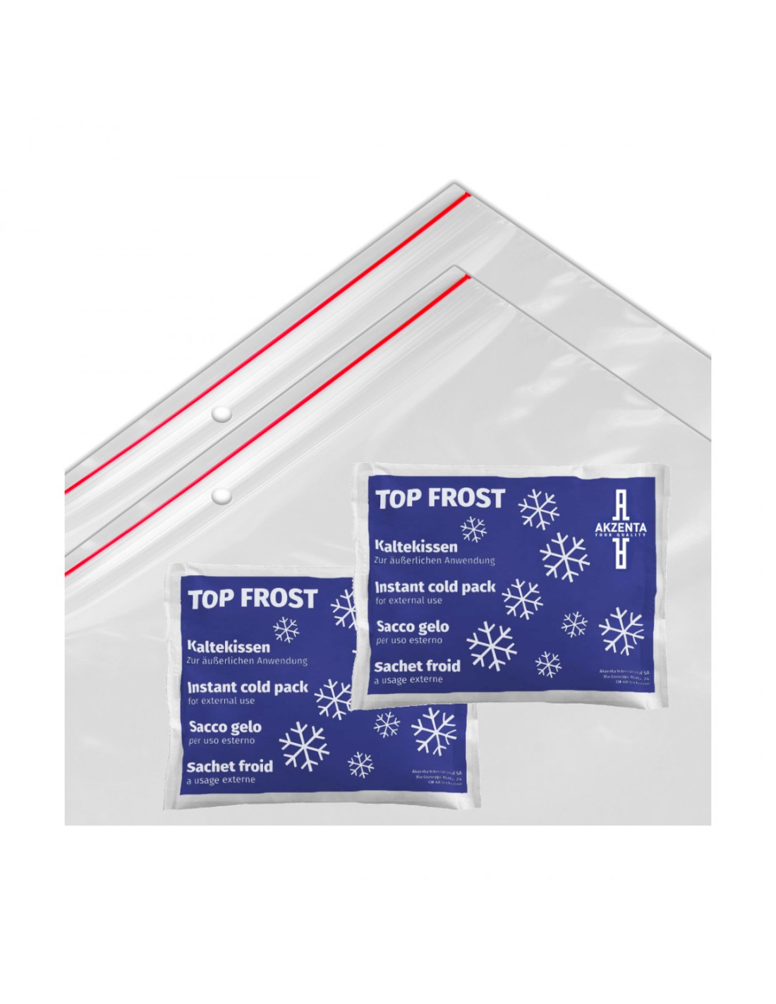 Zestaw na amputowane części ciała, składający się z dwóch zimnych kompresów oraz dwóch worków strunowych.