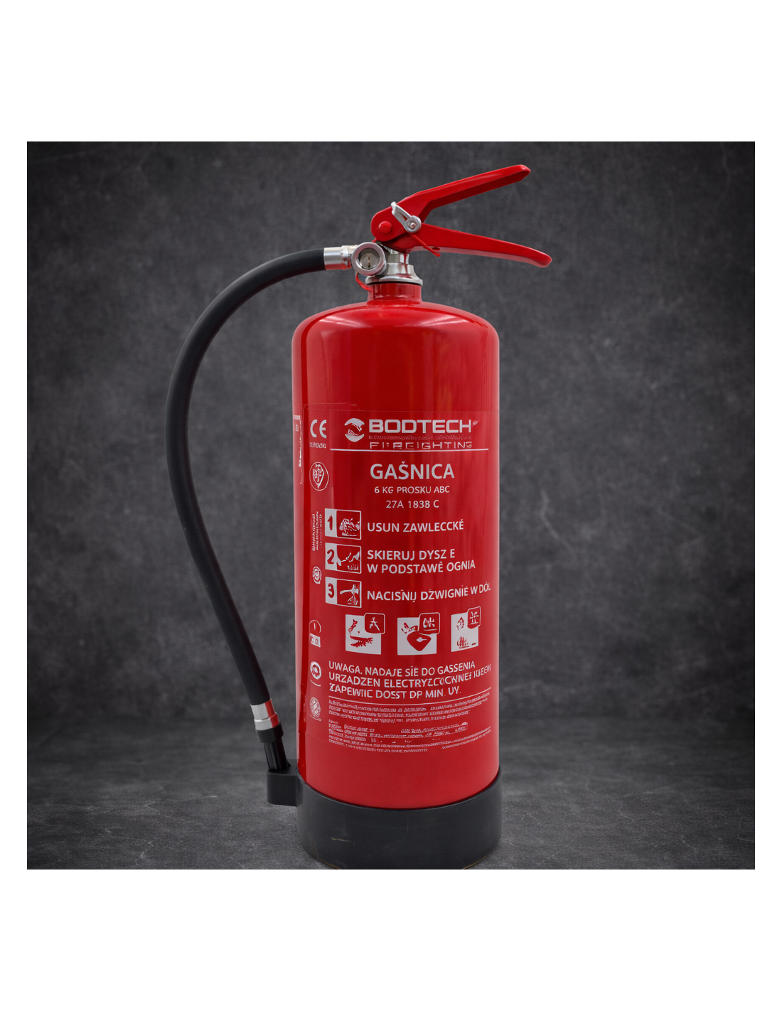 Gaśnica proszkowa o masie środka gaśniczego 9 kg przeznaczona jest do gaszenia pożarów w ich początkowej oraz rozwiniętej fazie. Skuteczność gaśnicza 43A 233B C pozwala na gaszenie pożarów ciał stałych, cieczy palnych oraz gazów, zapewniając bardzo wysoki poziom ochrony przeciwpożarowej.