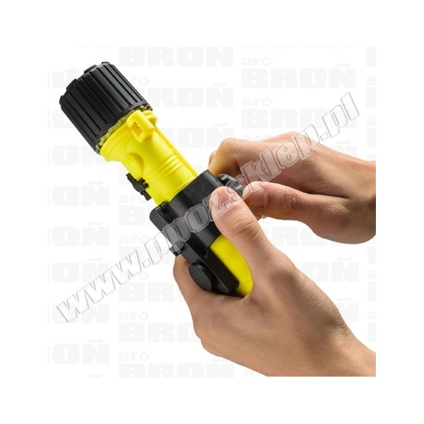 Uchwyt posiada możliwość łatwego demontażu latarki strażackiej.