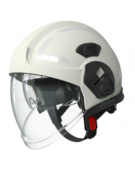 Hełm DRAGON HT 05 to nowy, rewolucyjny produkt firmy Pab Akrapovic. Wykonany według najnowszych technologii spełnia najsurowsze normy bezpieczeństwa. Całkowicie nowa skorupa ma niepowtarzalny design i wykonana jest z najwyższej klasy kompozytu wykorzystywanego do produkcji hełmów strażackich. Kompaktowe rozmiary, poliwęglanowa, odporna na zarysowania przyłbica chowana pod hełm, wewnętrzne okulary, adaptery do masek sprawia że DRAGON HT-05 doskonale sprawdzi się w każdej akcji ratowniczo-gaśniczej.