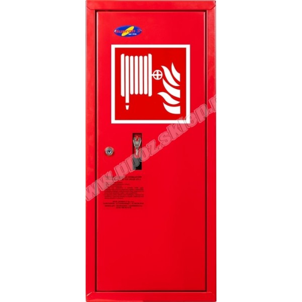 Hydrant wewnętrzny DN25, zawieszany, z wężem półsztywnym 25mm wersja wykonawcza - boczna. Otwory przyłączeniowe do instalacji ppoż są zaślepione i dają możliwość podłączenie do instalacji zasilającej 1” i 2”. Ciśnienie pracy hydrantu od 0,2 do 1,2 MPa. Wykonanie boczne pozwala zaoszczędzić miejsce w przestrzeni budynku. Hydranty tego typu stosowane są zazwczyaj a małych pomieszczeniach, w halach magazynowcyh z ścisle określoną przestrzenią roboczą. Hydrant wewnętrzny w tej wersji nie wyróżnia się na tle pomieszczenia.W skład hydrantu wchodzi: