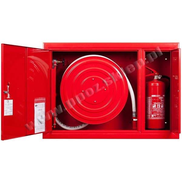 Hydrant wnękowy FI25 z miejscem na gaśnicę, lewy - hydrant do wnętrzna budynków z miejscem na gaśnicę (przydatny w ograniczonej przestrzeni)