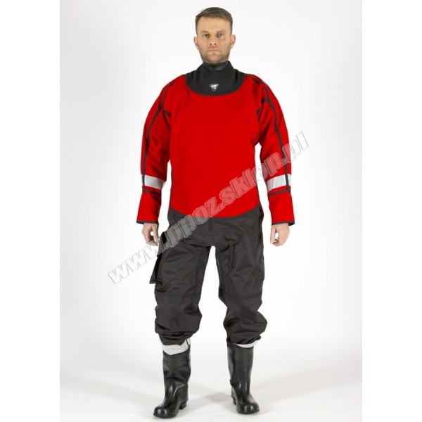 Skafander suchy lekki techniczny EQUES ADVANCED wykonany z wytrzymałej tkaniny nylonowej z laminatem poliuretanowym i wzmocnieniami z Cordury. Wyposażony w gazoszczelny zamek YKK, kryzy lateksowe, zintegrowane buty ochronne i odblaskowe taśmy SOLAS, zapewnia pełną ochronę i komfort podczas akcji ratowniczych.
