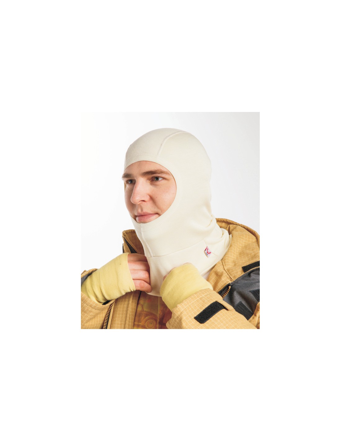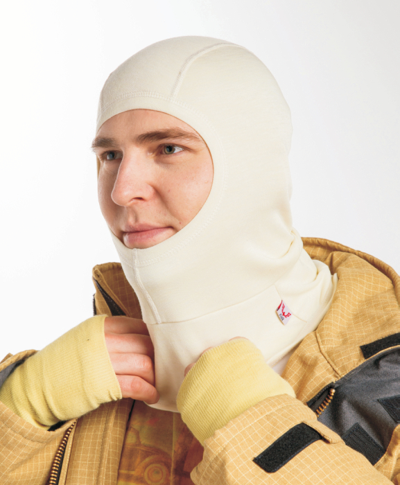 Dwuwarstwowa kominiarka w kolorze kości słoniowej. Przeznaczona dla strażaków, którym zapewnia ochronę i komfort podczas akcji gaśniczych. Kompatybilna z maskami aparatów powietrznych.