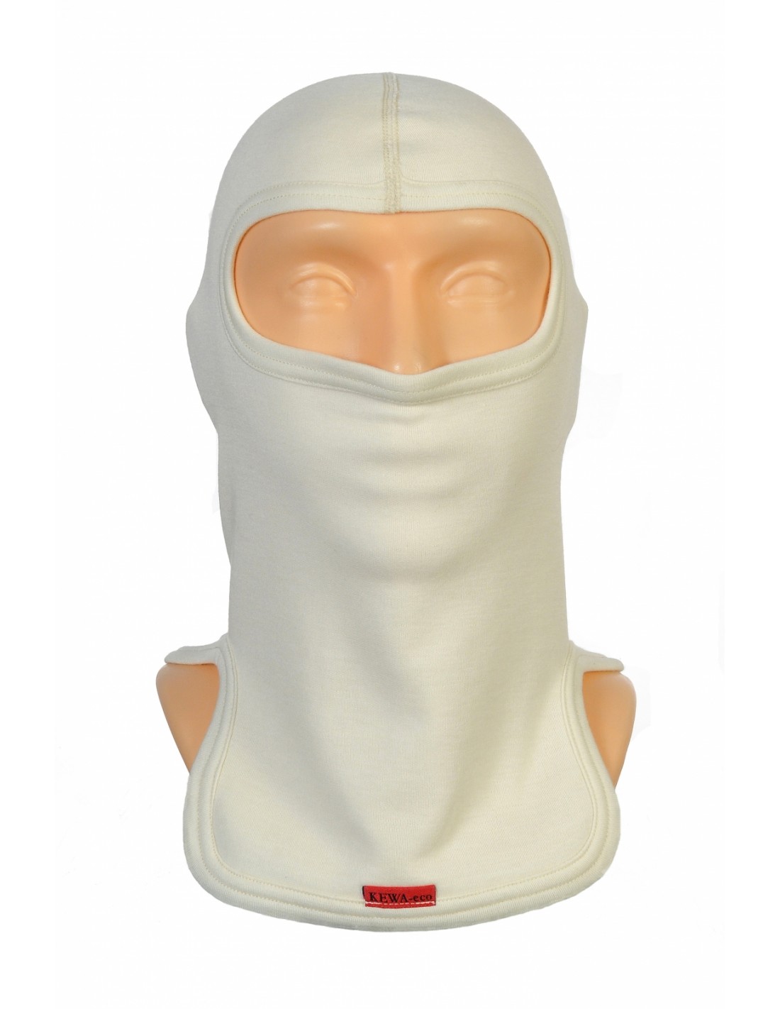 Niepalna, podwójna kominiarka w kolorze jasnym (ecru) to element odzieży strażackiej przeznaczony do użytku podczas akcji gaśniczych i ratowniczych. Została zaprojektowana tak, aby osłaniać większą część twarzy oraz szyję, chroniąc przed chwilowym narażeniem na płomienie i ciepło konwekcyjne. Kominiarka zakrywa niemal całą twarz, pozostawiając jedynie otwór wokół oczu.