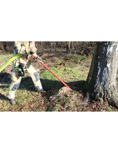 Lanca gaśnicza "LAS" jest specjalistycznym narzędziem przeznaczonym do gaszenia pożarów w lasach, szczególnie w przypadku pożarów poszycia leśnego, mchu, igliwia oraz niskiej roślinności. Pozwala na skuteczne i precyzyjne podanie środka gaśniczego (woda lub mieszanina wodno-pianowa) bez potrzeby bezpośredniego zbliżania się do ognia, co zwiększa bezpieczeństwo ratowników w trudnym i często nierównym terenie leśnym.