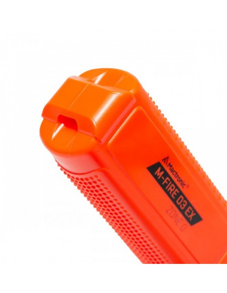 M-FIRE 03 EX Zone 0 to latarka przeznaczona do pracy w strefie zagrożonej wybuchem (strefa 0 gazowa), co gwarantuje certyfikat EX-ATEX. Urządzenie emituje światło o mocy 180 lumenów i zasięgu 117 metrów. Może pracować do 13 godzin na jednym komplecie baterii. Latarkę przed przypadkowym odkręceniem głowicy zabezpiecza śruba mocująca. M-FIRE 03 EX Zone 0 spełnia normę IP68, wyposażona jest we włącznik magnetyczny oraz zawór uwalniający nadmiar gazów. Ponadto umożliwia montaż na hełmie strażackim typu Gallet i Kalisz, a także pracę z nakładką sygnalizacyjną.