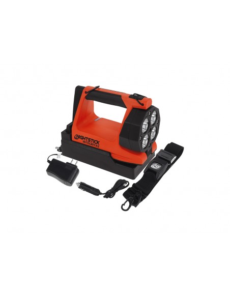 ZAWARTOŚĆ OPAKOWANIA: latarka XPR-5582, akumulator litowow-jonowy, zasilacz 230V AC i 12V DC, odpinany pasek na ramię