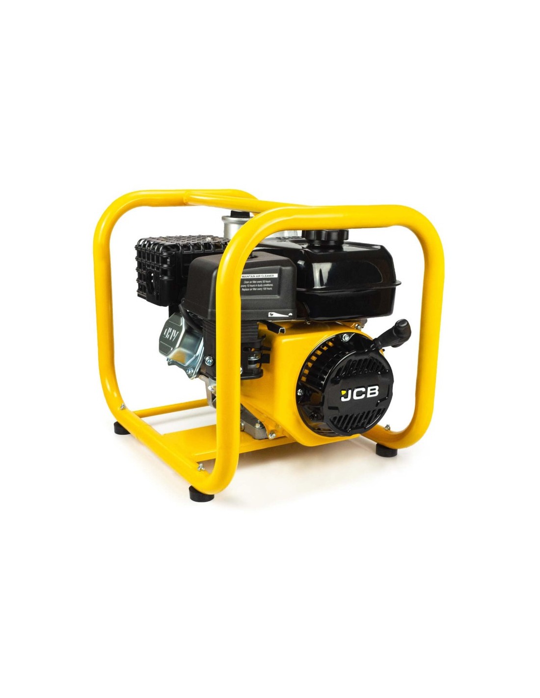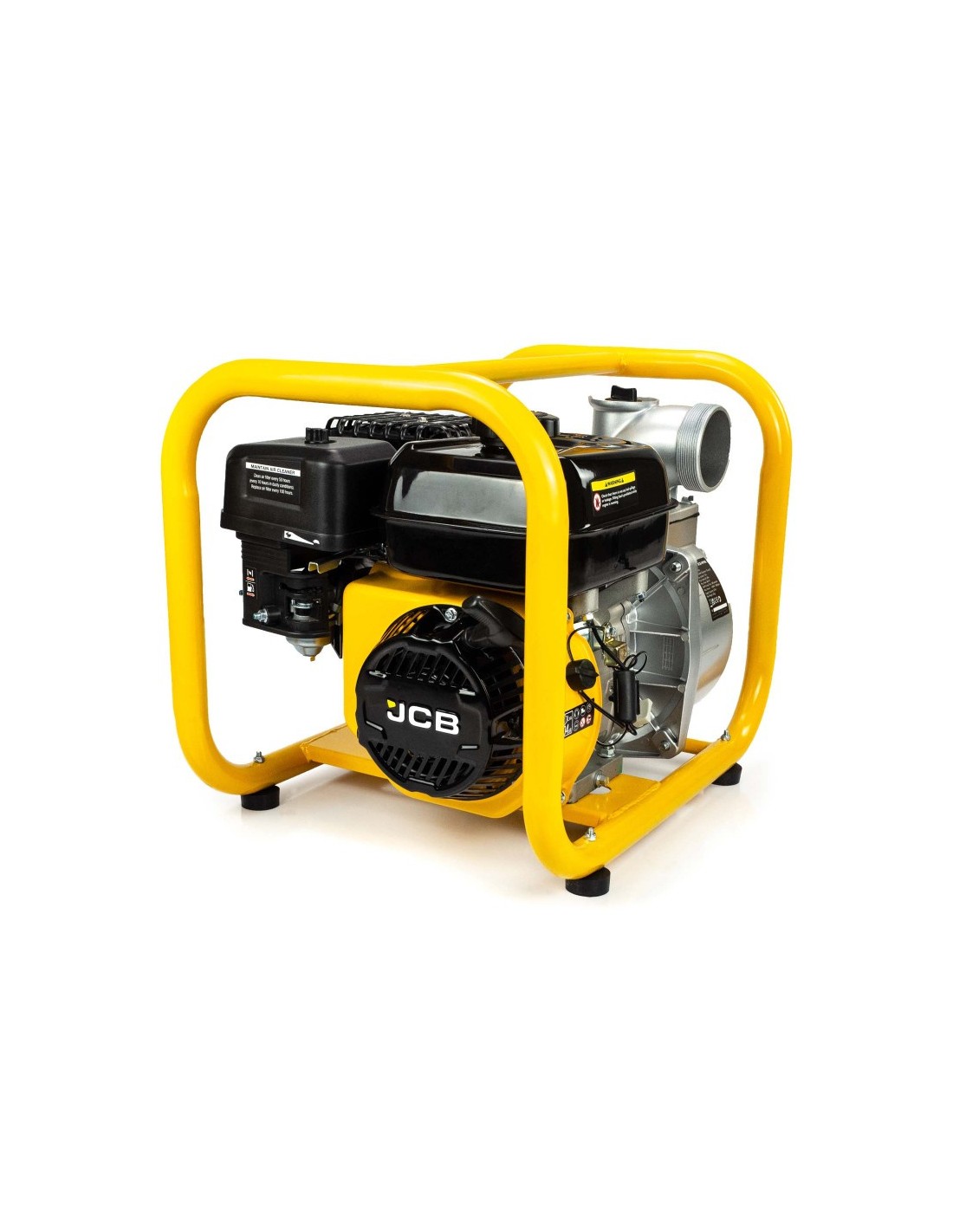 Sercem urządzenia jest czterosuwowy silnik JCB o pojemności 224 cm³, zapewniający maksymalny przepływ na poziomie 966 l/min. Motopompa umożliwia zasysanie wody z głębokości do 7 metrów, a stabilna stalowa rama o profilu 32 mm chroni podzespoły podczas intensywnej eksploatacji i transportu. Zastosowany system amortyzacji ogranicza drgania, zwiększając komfort obsługi oraz żywotność urządzenia.