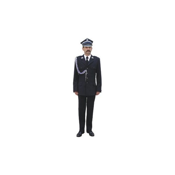 Materiał: gabardyna (55% poliester, 45% wełna). Uszyty wg wzoru obowiązującego jednostki OSP.