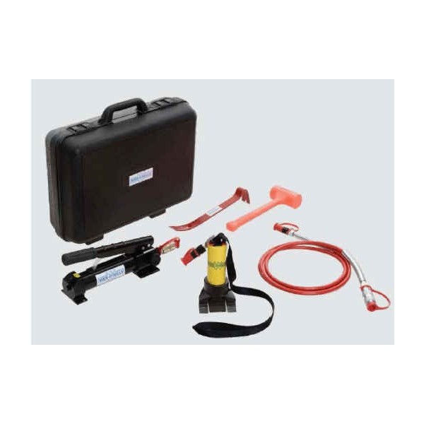 Zestaw to kompletne wyposażenie do szybkiego wyważania drzwi, unoszenia dużych ciężarów (płyty betonowe) oraz specjalnych zadań rozpierających. Łączna masa zestawu 16 kg.