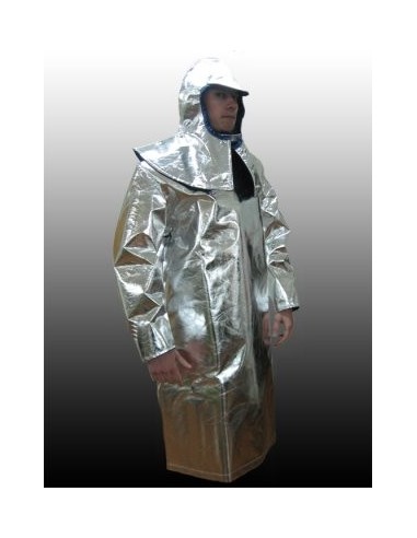 Fartuch ochronny żaroodporny wykonany z metalizowanej tkaniny szklanej i bawełny trudnopalnej skutecznie chroni przed płomieniem, rozpryskami metalu oraz promieniowaniem cieplnym. Spełnia normy PN-EN 340:1996 i PN-EN 531:1999, zapewniając wysoki poziom bezpieczeństwa i trwałości podczas pracy w warunkach wysokiej temperatury.