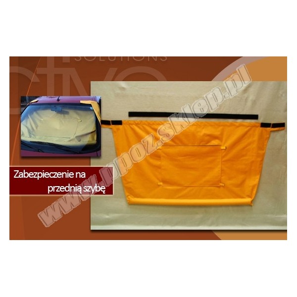 Zabezpieczenie na szybę chroni kierowcę i pasażera przed odłamkami szkła podczas akcji ratunkowej przy usuwaniu szyby. Wykonane z materiału Cordura, PE pianki i wyposażone w magnesy dla pewnego mocowania.