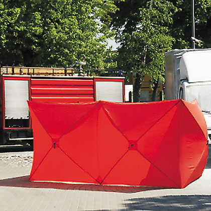 Parawan namiot ochronny GT 020 zapewnia prywatność i osłonę miejsc wypadków, z napisem STRAŻ lub POLICJA na dwóch segmentach. Lekki, szybki w rozkładaniu, z wzmocnionym stelażem i stabilizującymi stopkami, mieści się w poręcznym pokrowcu.