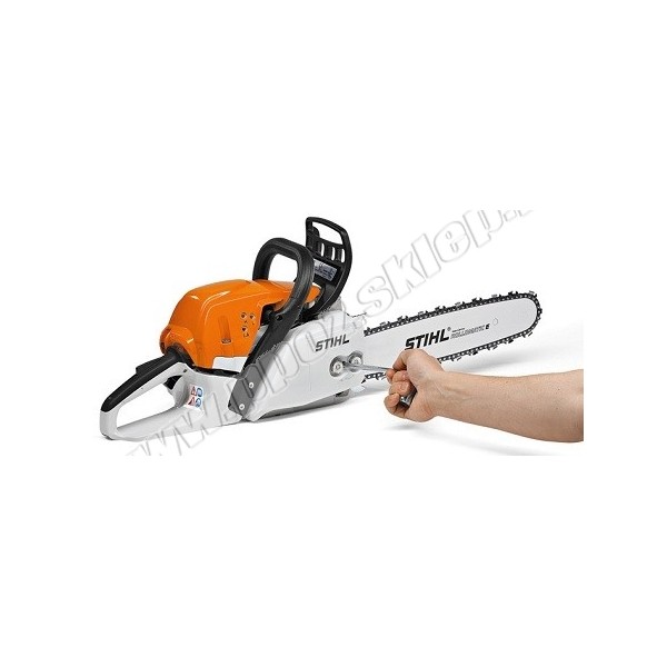 Śruba napinacza obracana jest specjalnym pokrętłem przechodzącym przez pokrywę koła napędowego piły łańcuchowej. Umożliwia to uniknięcie kontaktu dłoni z ostrą piłą łańcuchową i ostrymi zębami zderzaka oporowego.