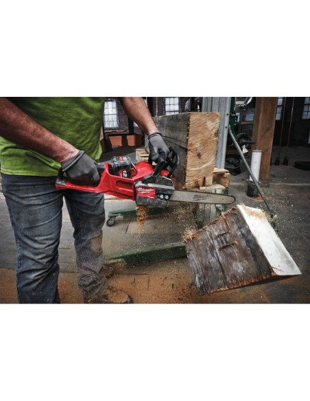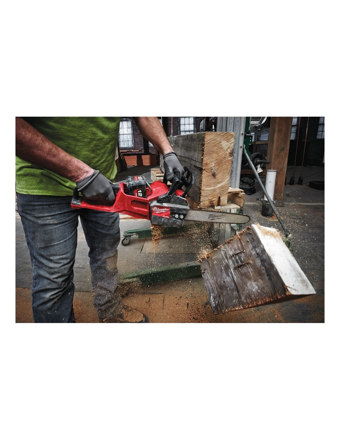 Pilarka akumulatorowa M18 FUEL™ 40 cm to sprzęt stworzony z myślą o najbardziej wymagających zastosowaniach, w tym w ratownictwie i straży pożarnej. Dzięki technologii FUEL™ pilarka utrzymuje stałą prędkość cięcia bez ryzyka zablokowania, oferując wydajność przewyższającą pilarki spalinowe 40 cm³.