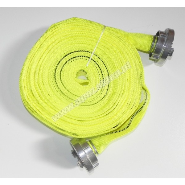 Wąż tłoczny W/42/20-ŁA PU FLUOFLEX w kolorze żółtym - pożarniczy wąż tłoczny z wykładziną poliuretanową do pomp pożarniczych