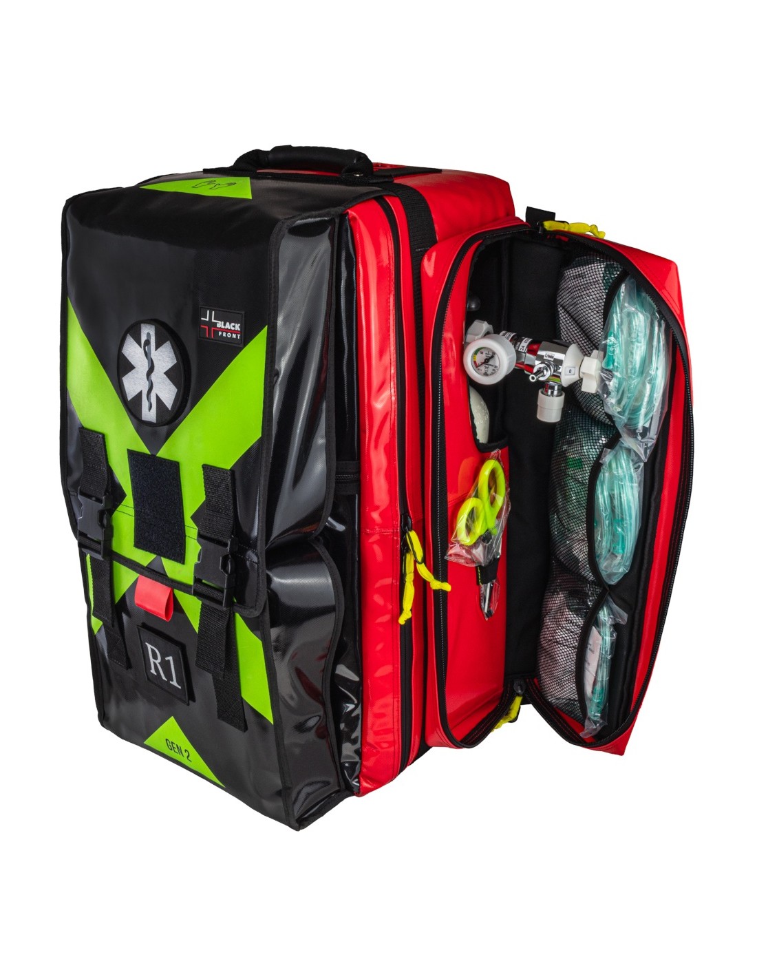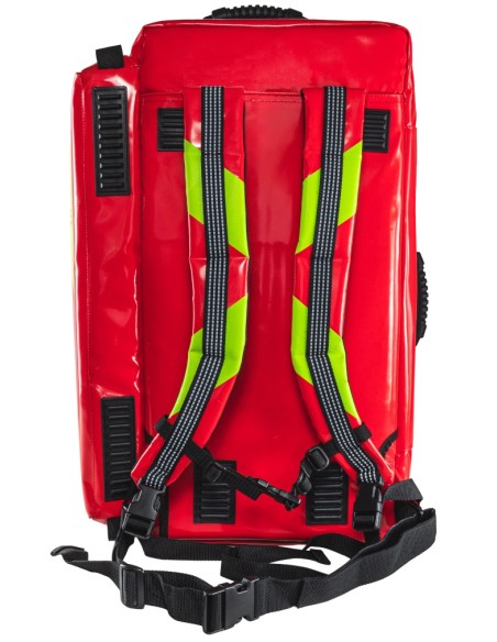 Zestaw umieszczony jest w nowoczesnym plecaku modułowym, który zapewnia maksymalną ergonomię pracy ratownika. Konstrukcja umożliwia dostęp do całego wyposażenia po otwarciu komory głównej, a system kolorowych saszetek znacząco przyspiesza identyfikację potrzebnych środków.