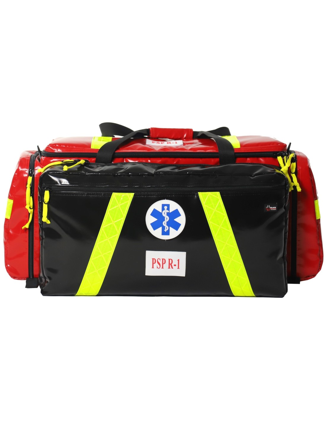 Zestaw umieszczono w profesjonalnej torbie ratowniczej BLACK FRONT BF-XL-M, zaprojektowanej na podstawie doświadczeń ratowników medycznych i instruktorów ratownictwa. Konstrukcja torby została opracowana tak, aby zapewnić szybki dostęp do wyposażenia, wygodę transportu oraz wysoką odporność na intensywne użytkowanie.