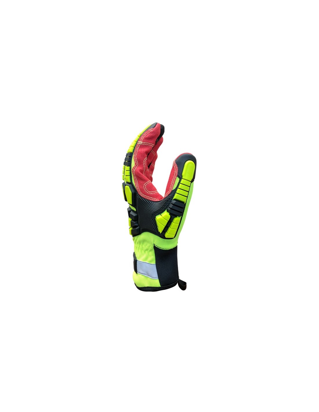 Aby zapewnić odpowiednią widoczność, rękawice wykonane są z jaskrawego materiału, a na mankiecie wszyty jest dodatkowy odblaskowy element.