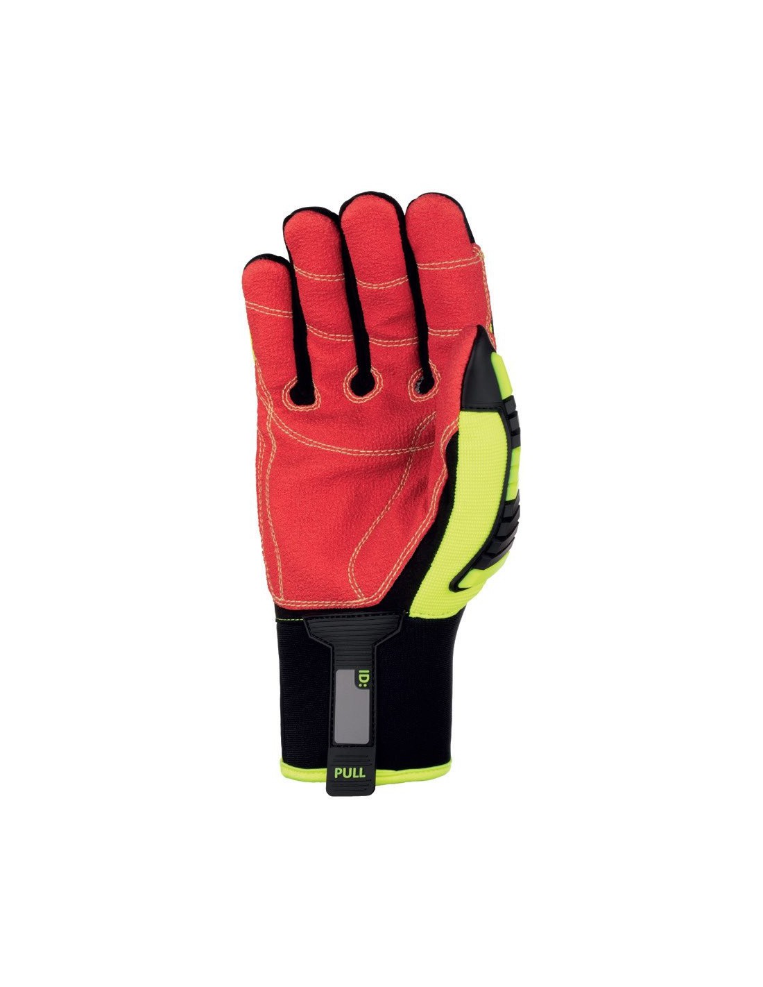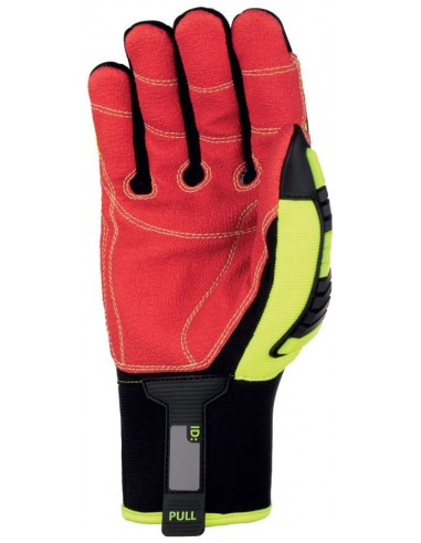 - grzbiet rękawicy: od nadgarstka po czubki palców (łącznie z ochroną paznokci) pokryty gumowymi wstawkami, chroniącymi dłoń użytkownika przed zmiażdżeniem. Rękawice dzięki specjalnej warstwie antyprzepięciowej, uzyskują niemal najwyższe parametry ochrony przed zagrożeniami mechanicznymi, które zgodnie z normą EN 388:2016 wynoszą 4X43.