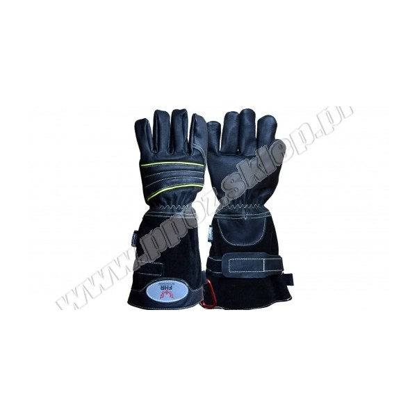 Rękawice strażackie FHR 001 L (mankiet) - wykonane z najwyższej jakości skóry typu nappa, niepalnej, wodoodpornej, garbowanej w sposób zapobiegający kurczeniu się.