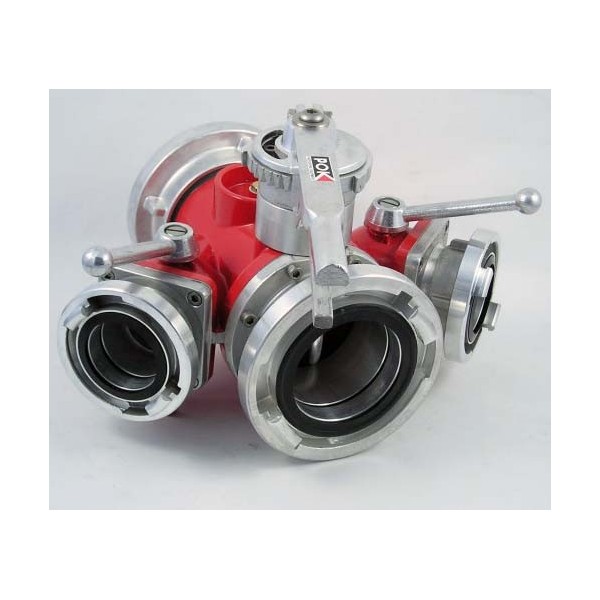 Rozdzielacz kulowy potrójny 75/52-52-52 - podział wody z głównej linii wężowej o średnicy 75 na 3 równe strumienie o średnicy 52