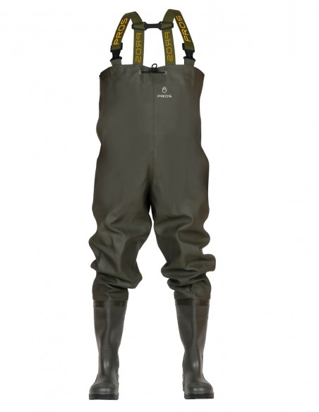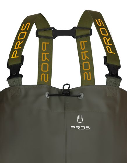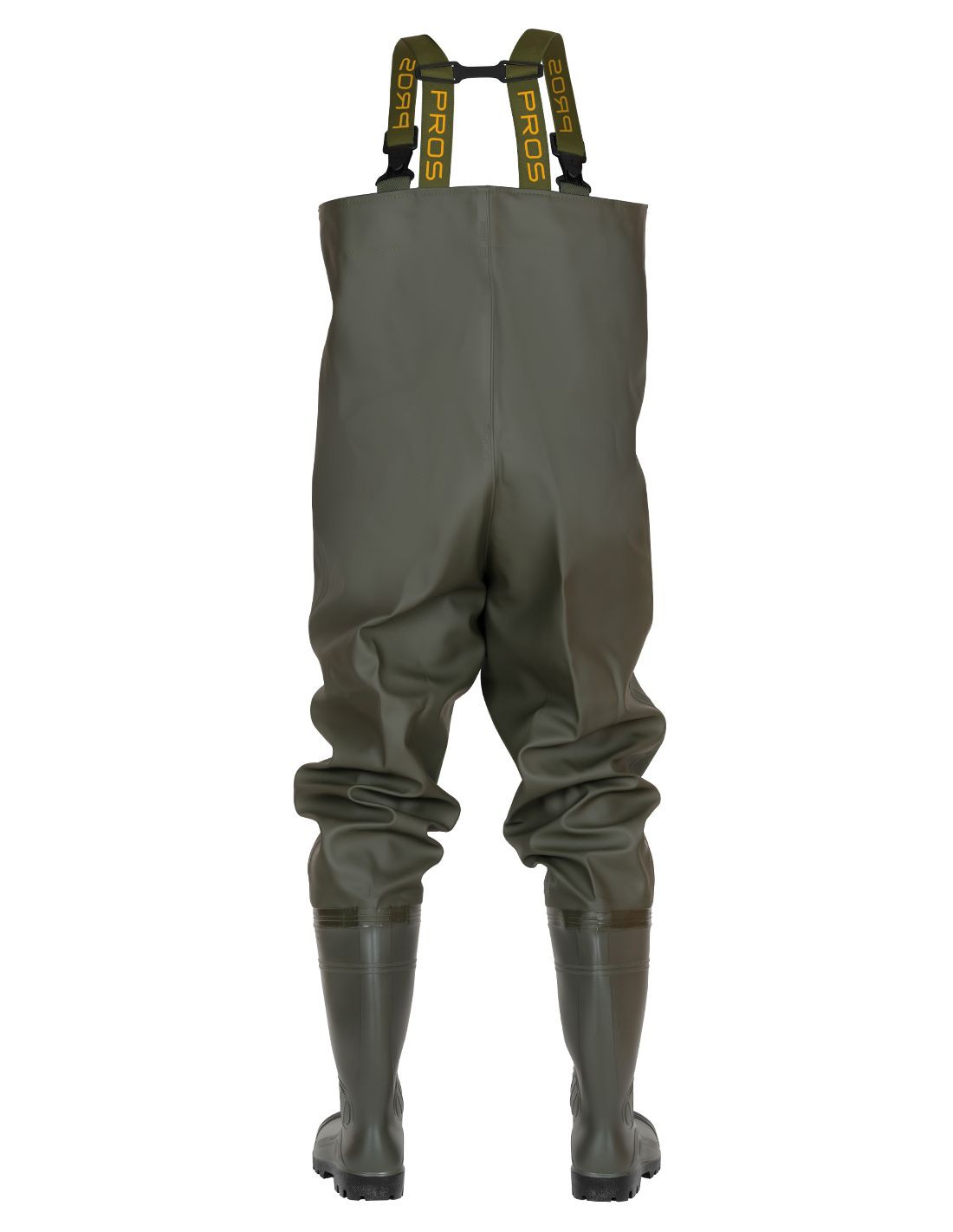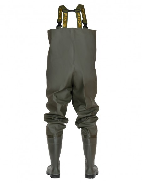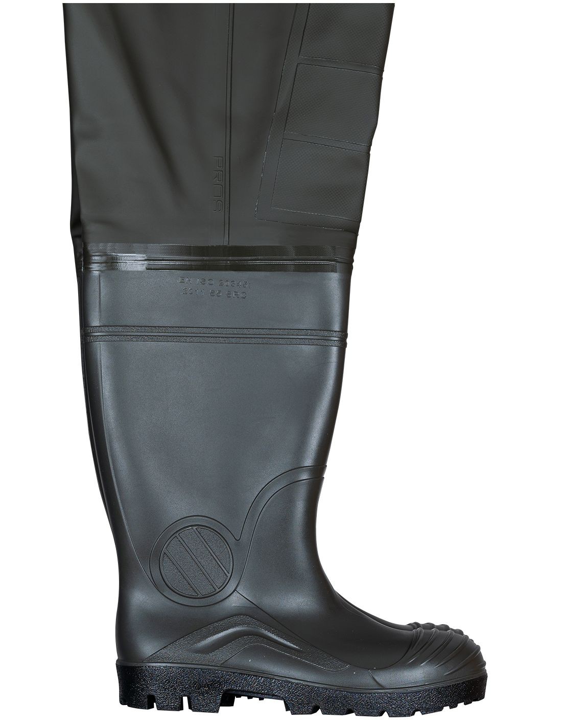 Spodniobuty wodochronne o podwyższonej odporności na uszkodzenia mechaniczne, z wgrzanymi na stałe, wysokiej jakości kaloszami. Wykonane techniką obustronnego zgrzewania, co zwiększa wytrzymałość szwów. Dodatkowe wzmocnienia na kolanach. Kieszeń wewnętrzna ułatwia przechowywanie dokumentów. Specjalna wkładka chroni podeszwę przed przebiciem, a nosek zwiększa bezpieczeństwo palców stóp. Możliwość regulacji obwodu na wysokości klatki piersiowej.