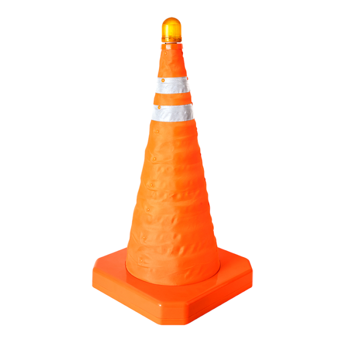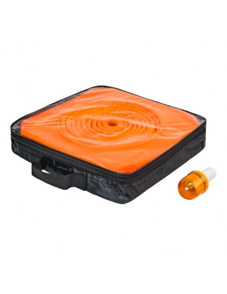 Składany, świecący pachołek drogowy w kolorze pomarańczowym, z odblaskami i LED, zapewnia dobrą widoczność w dzień i w nocy. Lekki, regulowany i pakowany w poręczny pokrowiec, łatwy w transporcie i przechowywaniu.