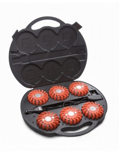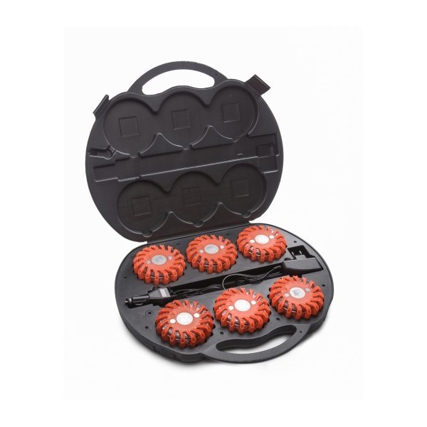 Flara ostrzegawcza LED - zestaw 6 flar z walizką - diodowe flary idealne do znakowania miejsc wypadków, awarii lub innych miejsc działań ratowniczych