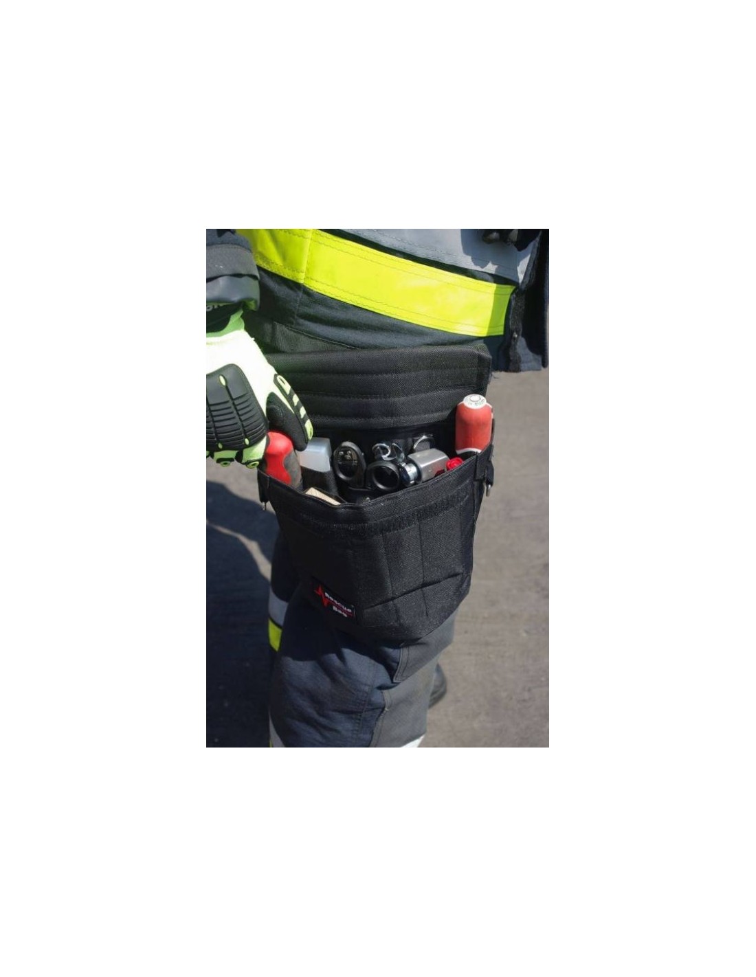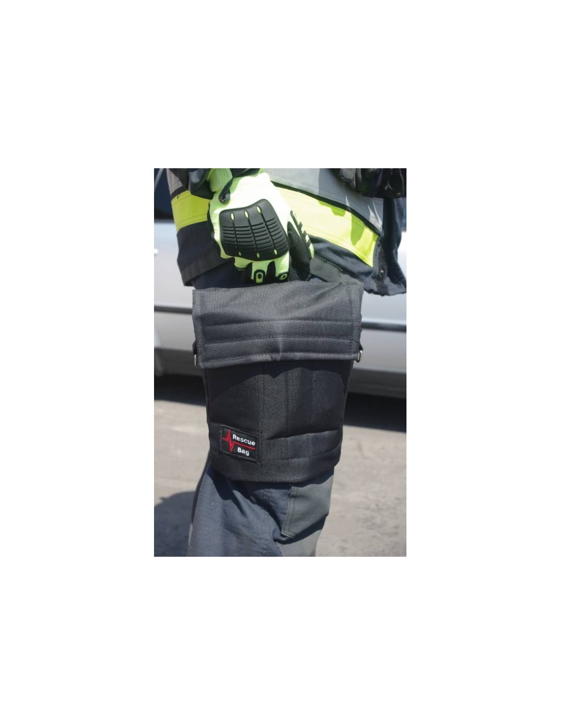To bardzo ciekawe rozwiązanie, dzięki któremu nie potrzebujemy paska ani żadnych innych dodatkowych mocowań przy spodniach. Dwa półkola zamontowane na zewnątrz torby służą do przypięcia rękawic. Ponadto istnieje możliwość pełnej regulacji mocowań, dzięki czemu każdy strażak może jej wygodnie używać a torba nie przeszkadza podczas działań ratowniczych. Dodatkowy rzep przy klapie pozwala na swobodne wyciąganie ekwipunku. Torba wyposażona jest w uchwyt ułatwiający jej przenoszenie. Torbę RescueBag można również wykorzystać jako torbę narzędziową w samochodzie bojowym.