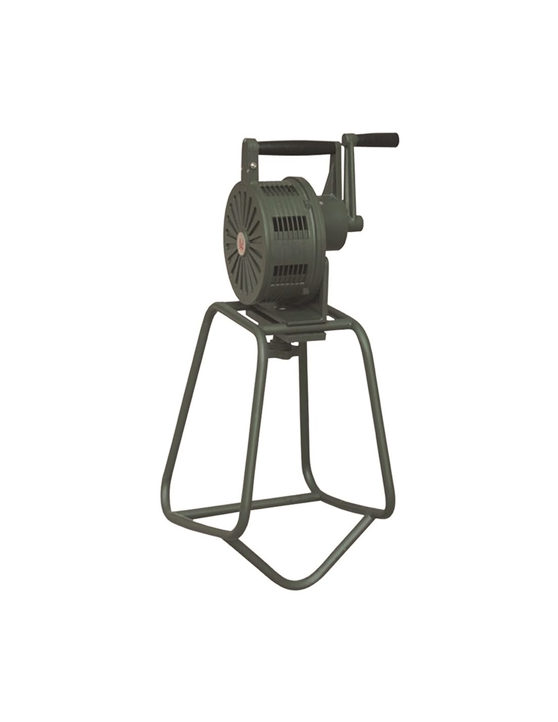 Syrena alarmowa ręczna firmy MIL-TEC - zamontowana na solidnym metalowym stelażu umożliwiającym przytrzymanie jej nogą