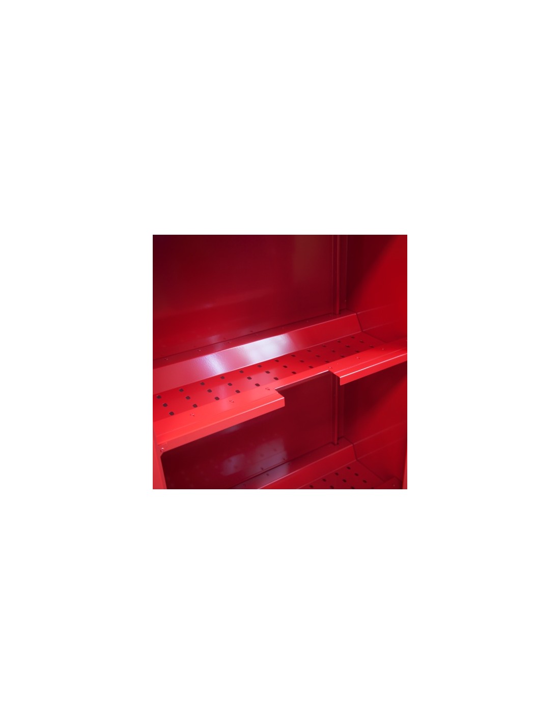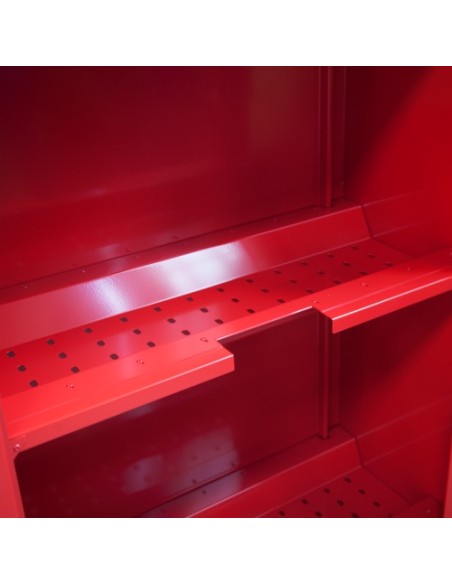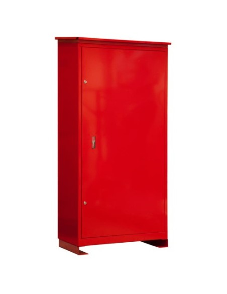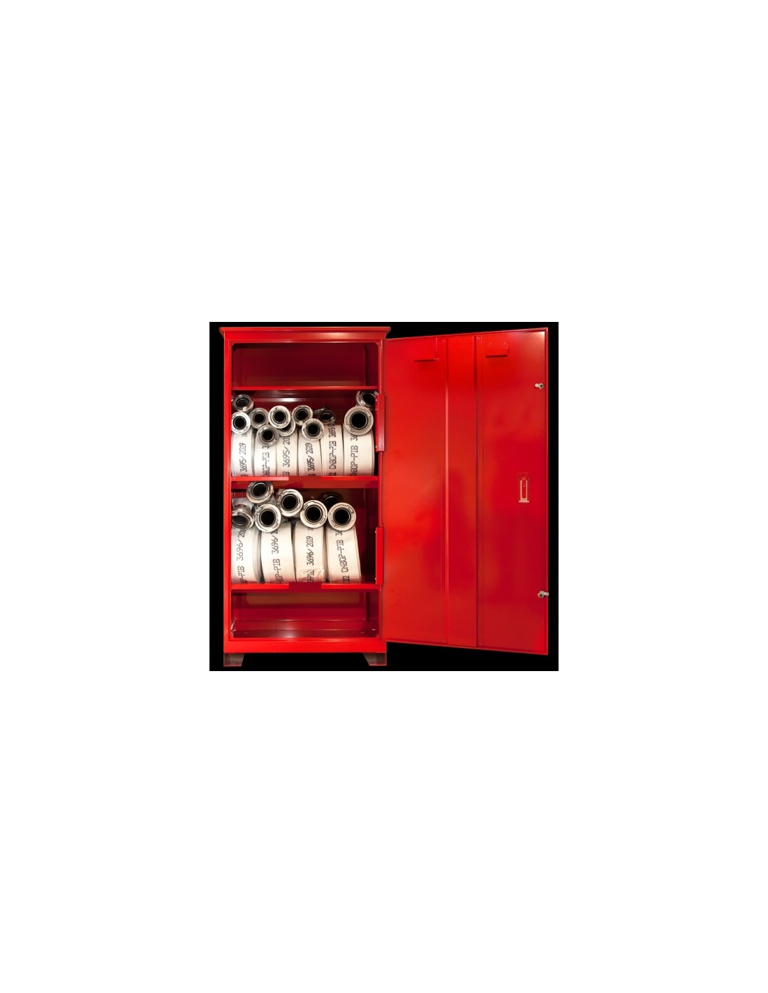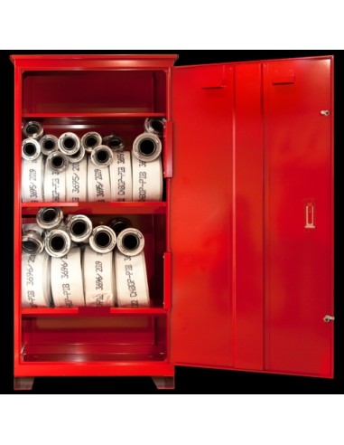 Szafa na węże i sprzęt ppoż. z półkami to funkcjonalne i trwałe rozwiązanie przeznaczone do przechowywania podstawowego wyposażenia przeciwpożarowego w obiektach przemysłowych, użyteczności publicznej, na parkingach, składowiskach oraz w jednostkach ochrony przeciwpożarowej. Konstrukcja szafy umożliwia uporządkowane i bezpieczne składowanie węży tłocznych, kluczy do zasuw, koców gaśniczych oraz drobnego sprzętu ppoż., takiego jak prądownice, klucze do łączników i przełączników.