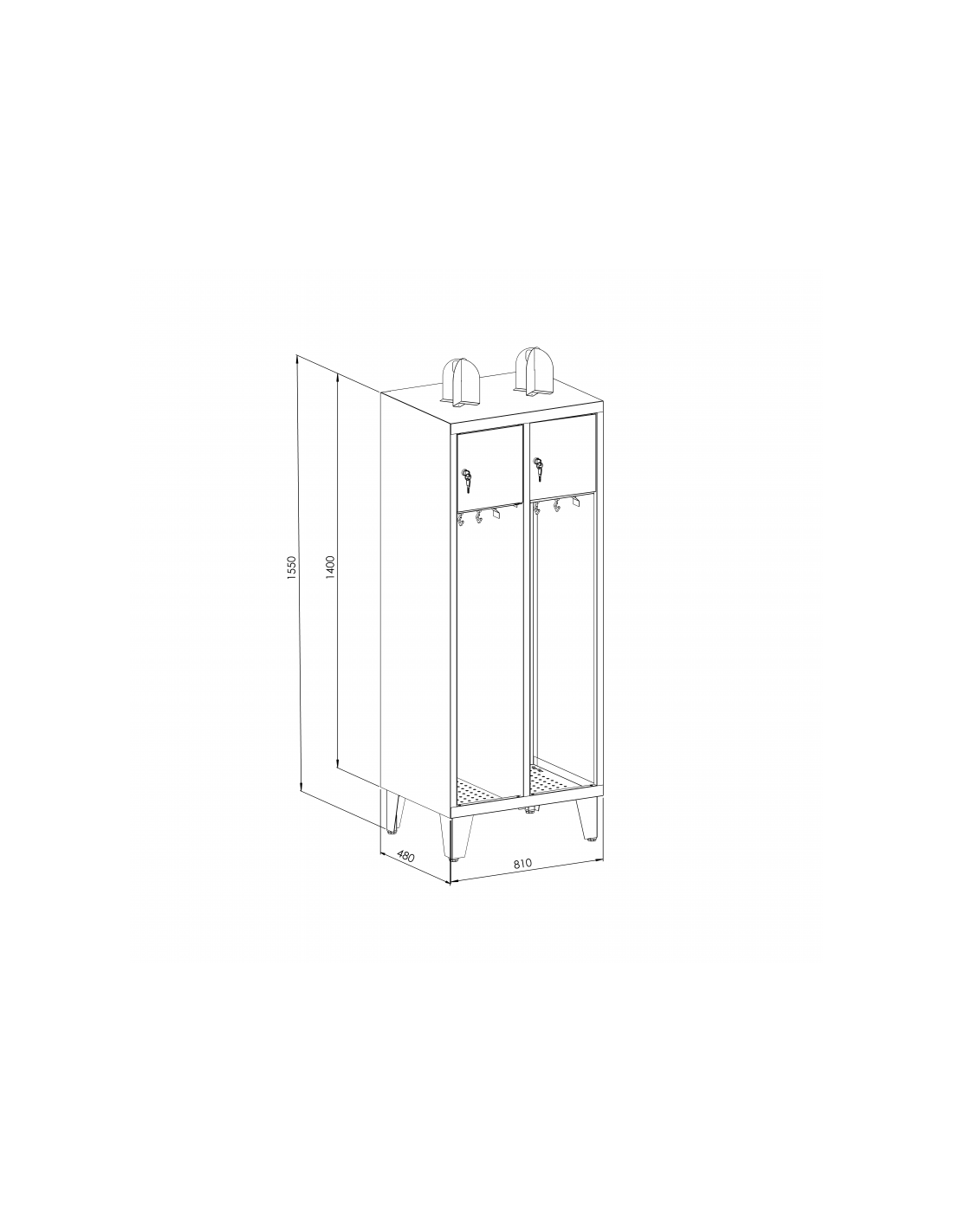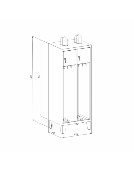 Solidnie wykonana szafa strażacka na nogach - wersja niższa. Idealnie pasuje do suszenia ubrania strażackiego po akcji bojowej i nie tylko. Możliwość suszenia hełmu dzięki umieszczonemu cokołowi.