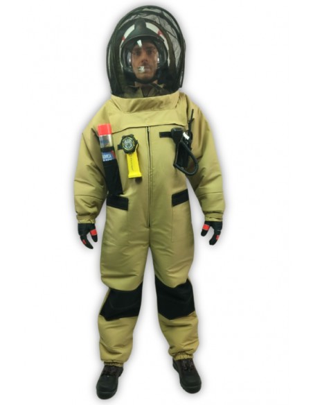 Kombinezon zabezpiecza całe ciało, poza dłońmi i stopami – do jego użytkowania zalecane są rękawice ochronne oraz odpowiednie obuwie. Ochrona głowy została skonstruowana tak, by umożliwić noszenie hełmu – zarówno strażackiego, jak i innych typów: wojskowych, policyjnych, budowlanych. Zintegrowany kaptur zapinany na zamek i dodatkowy kołnierz z rzepem zapewniają szczelność i dodatkową barierę ochronną.