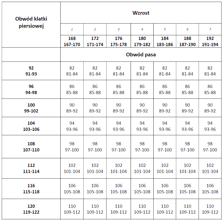 Tabela rozmiarów