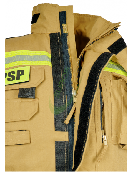 Ubranie składa się z dwóch części: kurtka lekka i spodnie lekkie do pożarów w przestrzeni otwartej zgodne z najnowszą normą PN EN 15384:2020.