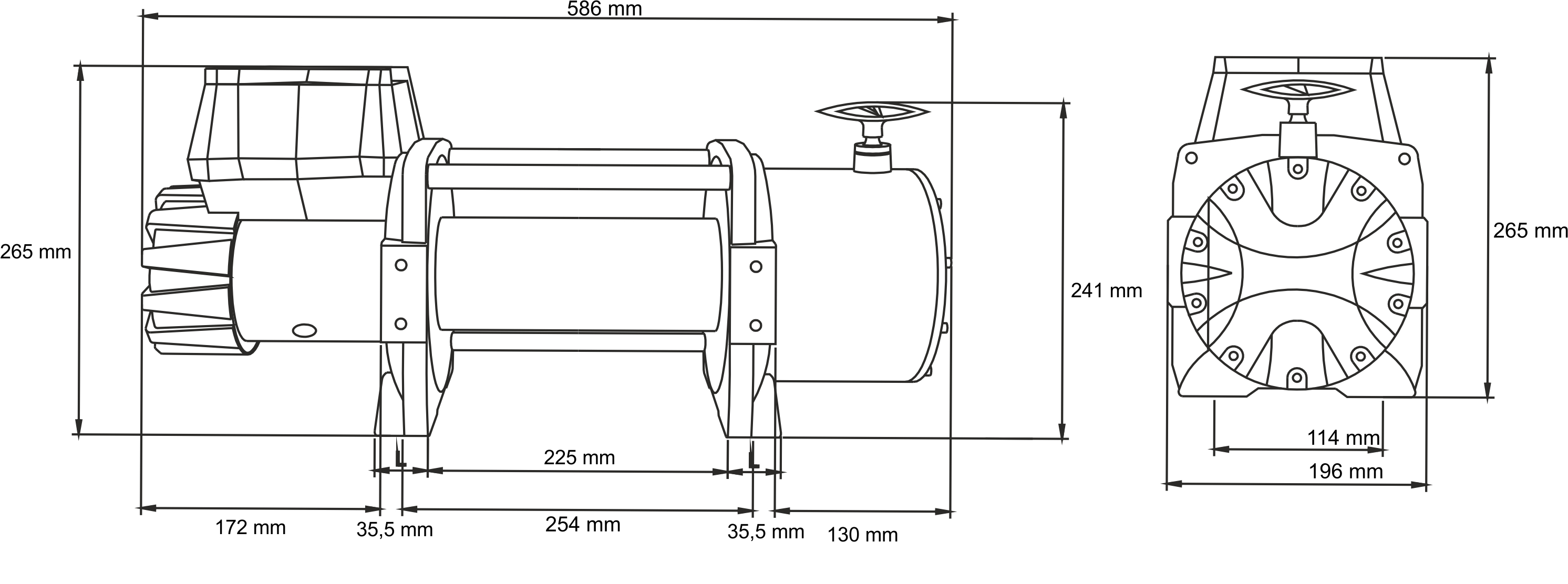 - wymiary wyciągarki (LxWxH): 586 mm x 196 mm x 265 mm