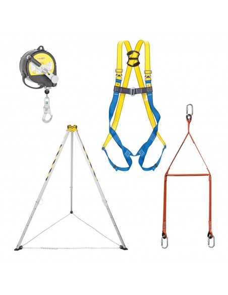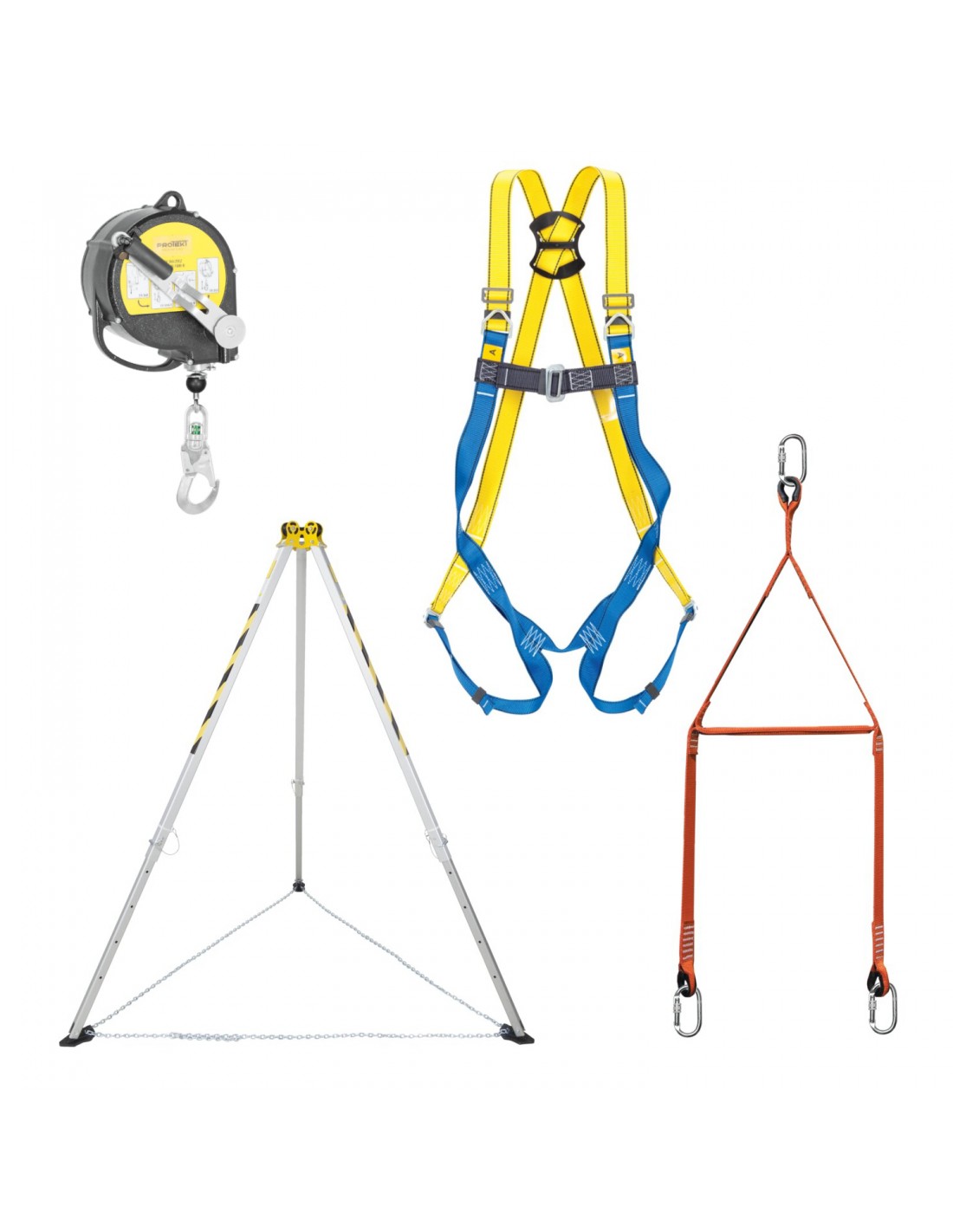 Zestaw LIFTER 3 N przeznaczony jest do bezpiecznego wykonywania prac na głębokościach oraz ewakuacji osób z przestrzeni zamkniętych. Kompletny pakiet zawiera statyw, urządzenie samohamowne z wyciągarką, szelki bezpieczeństwa oraz akcesoria transportowe.