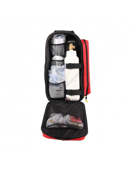 Plecak ratowniczy do zestawu tlenowego cechuje wysoka funkcjonalność i przemyślane rozwiązania konstrukcyjne, które sprawiają, że dostęp do wyposażenia jest intuicyjny, a wszystkie sprzęty mają odpowiednie miejsce. Plecak składa się z przestronnej komory głównej rozkładanej na pół oraz dużej kieszeni bocznej.